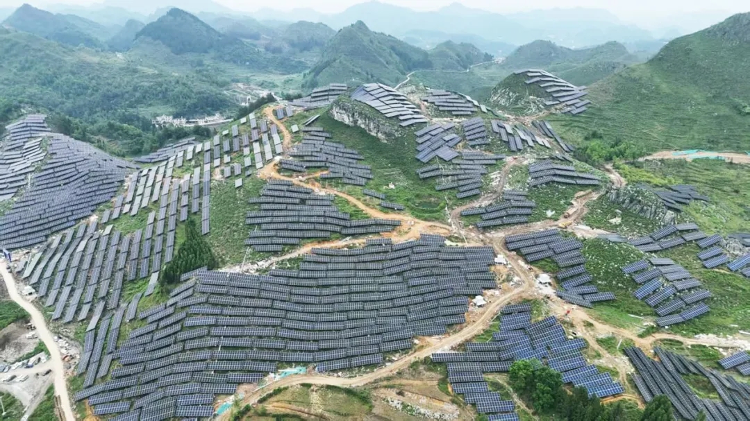 火热的七月,走进贵州能源集团水城二期1060MWp新能源项目,光伏板沿着山形铺满千沟万壑,不断将光能聚集变成源源不断的电能,曾经光秃秃的“荒山石岭”正变为“金山银山”。